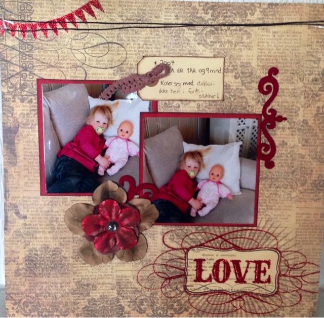 Denne LO'en laget jeg på et kurs med Bibeke Harila på SteinkjerScreppa 2012. Her fikk vi øynene opp for detaljer, og dette var den første gangen jeg prøvde maling! Litt skummelt var det, men det ble ikke så værst! Vi har også sydd litt på layouten:) Jeg fikk mange nye ideer og masse inspirasjon! Kjempebra kurs!!